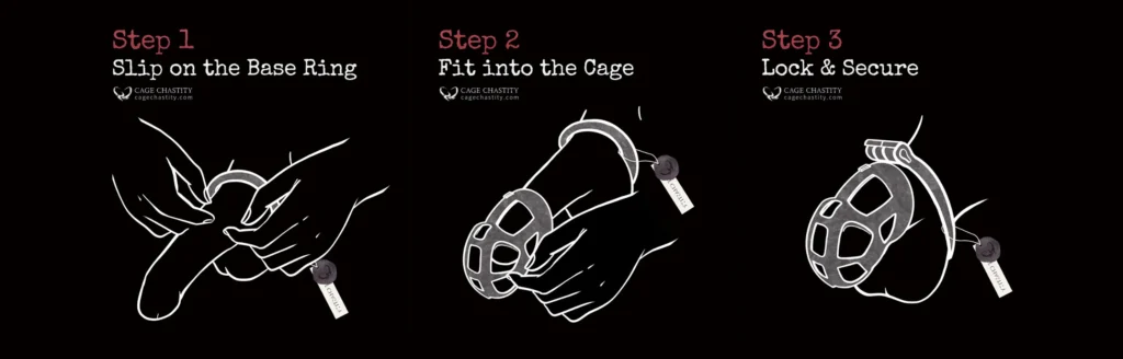 Putting on a chastity cage might sound simple enough: slide your balls through the ring, guide your shaft into the cage, and lock it up. For most people, as long as the sizing is right, it really is that easy. Whether you’re standing, sitting, or squatting, you’ll likely have it on in just a few minutes.