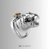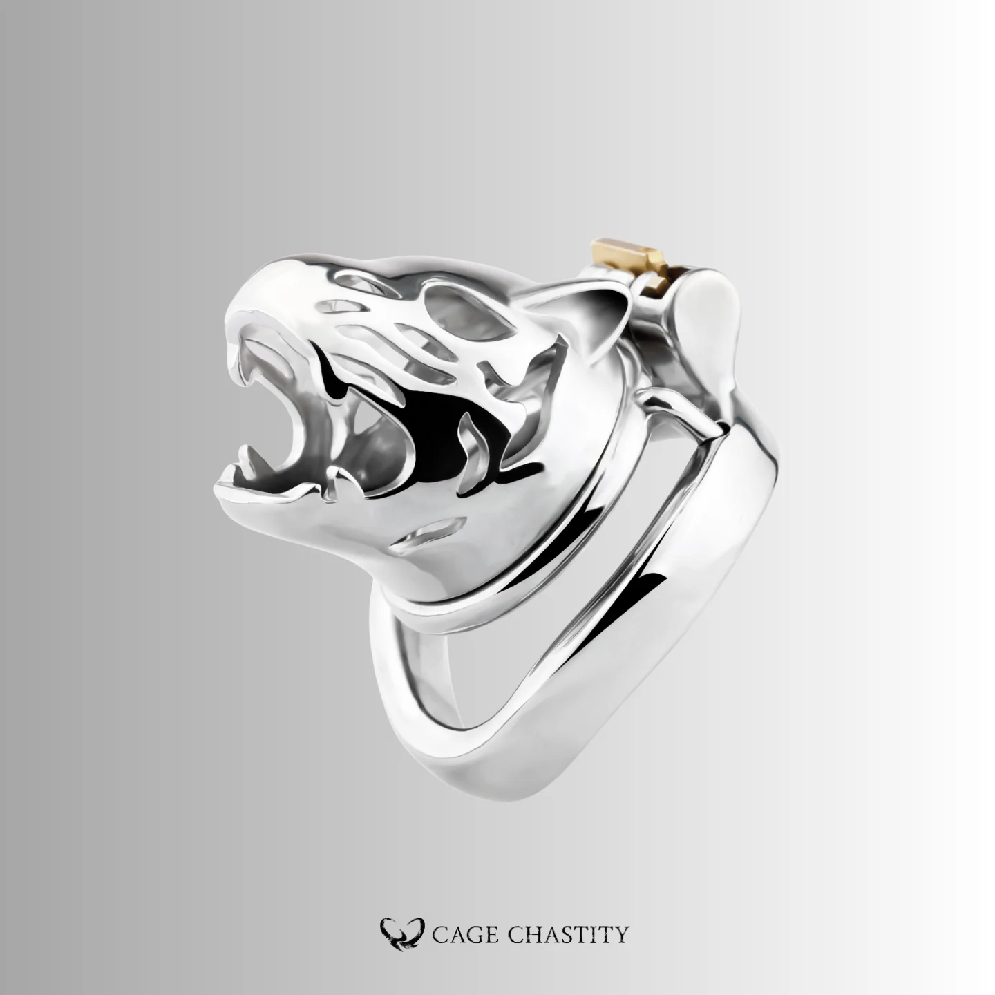 The CCK1153 Tiger Chastity Cage stands out as one of the most refined and highly sought-after metal chastity devices. Crafted from premium 316L stainless steel, this cage boasts a flawlessly polished surface for ultimate comfort and hygiene. The bold tiger-head design not only adds aesthetic appeal but also ensures a strong and secure lock.