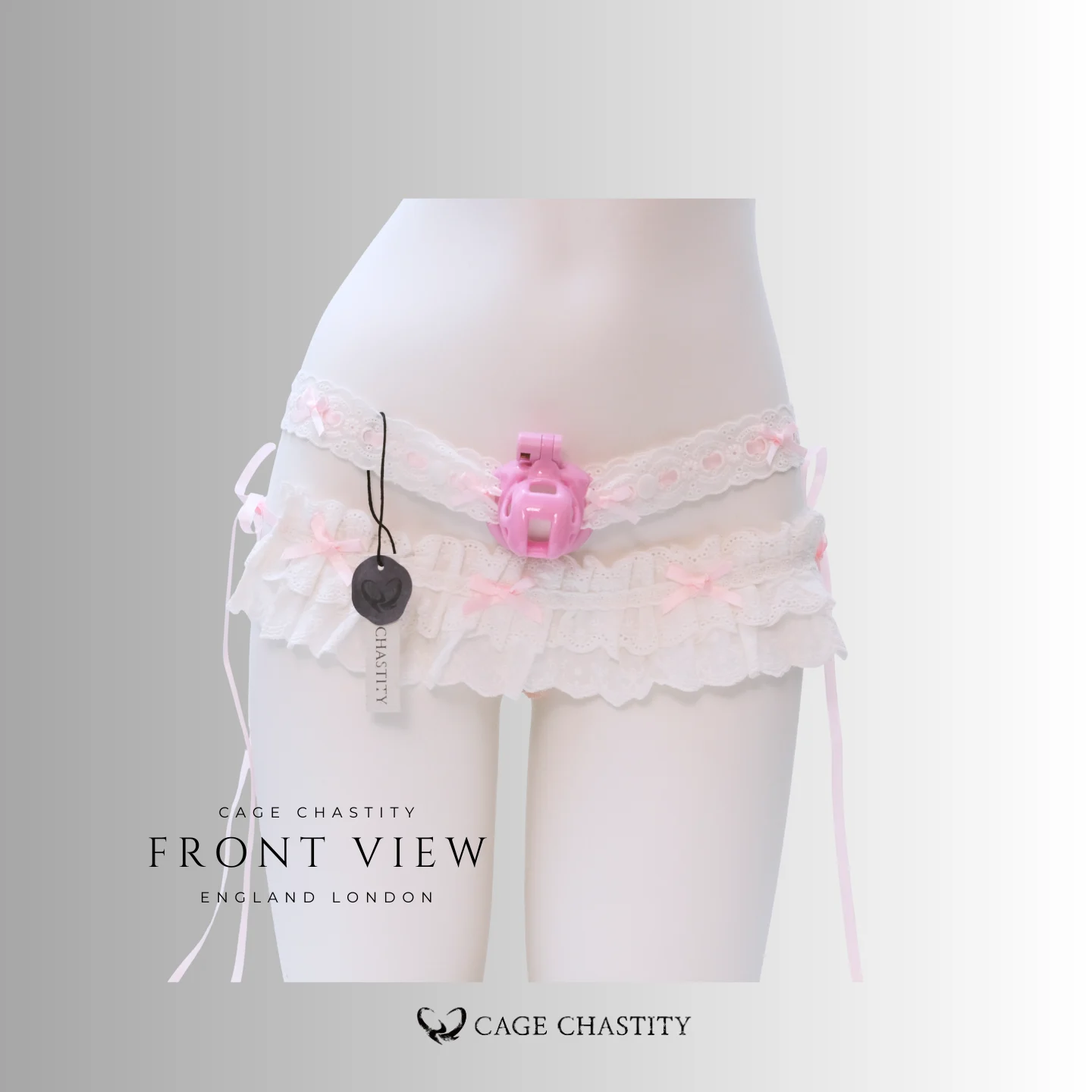 The waistband features a locking structure that holds your cage securely in place, while the airy frilly panty adds bounce and irresistible motion with every movement.