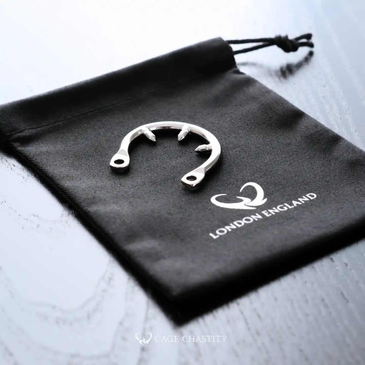The Spiked Chastity Anti-Off Ring is designed to deliver both superior security and enhanced stimulation. Made from premium stainless steel, this innovative ring features strategically placed spikes that serve a dual purpose: preventing slipping and ensuring the device stays securely in place, while also providing a firm and stimulating experience for the wearer. Each spike is rounded at the tip rather than needle-sharp, striking a careful balance between restraint and safety—discouraging erections without breaking the skin. The combination of anti-slip functionality and stimulating pressure makes this ring a versatile and powerful addition to any chastity setup.